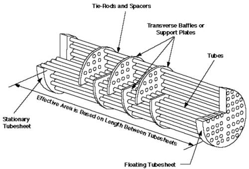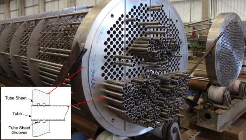 Het meest bekende gebruik van buisplaten is misschien wel het ondersteunen van elementen in warmtewisselaars en ketels. Deze apparaten bestaan uit een dichte opstelling van dunwandige buizen die zich in een omsloten, buisvormig omhulsel bevinden. De buizen worden aan beide uiteinden ondersteund door platen die in een buis zijn geboord. vooraf bepaald patroon om de buisuiteinden door de plaat te laten gaan. De uiteinden van de buizen die de buisplaat binnendringen, worden uitgezet om ze op hun plaats te vergrendelen en een afdichting te vormen. Het patroon van de buisgaten of "pitch" varieert de afstand van de ene buis tot de andere en de hoek van de buizen ten opzichte van elkaar en ten opzichte van de stroomrichting. Dit maakt manipulatie van vloeistofsnelheden en drukval mogelijk en biedt de maximale hoeveelheid turbulentie en contact met het buisoppervlak voor effectieve warmteoverdracht.
